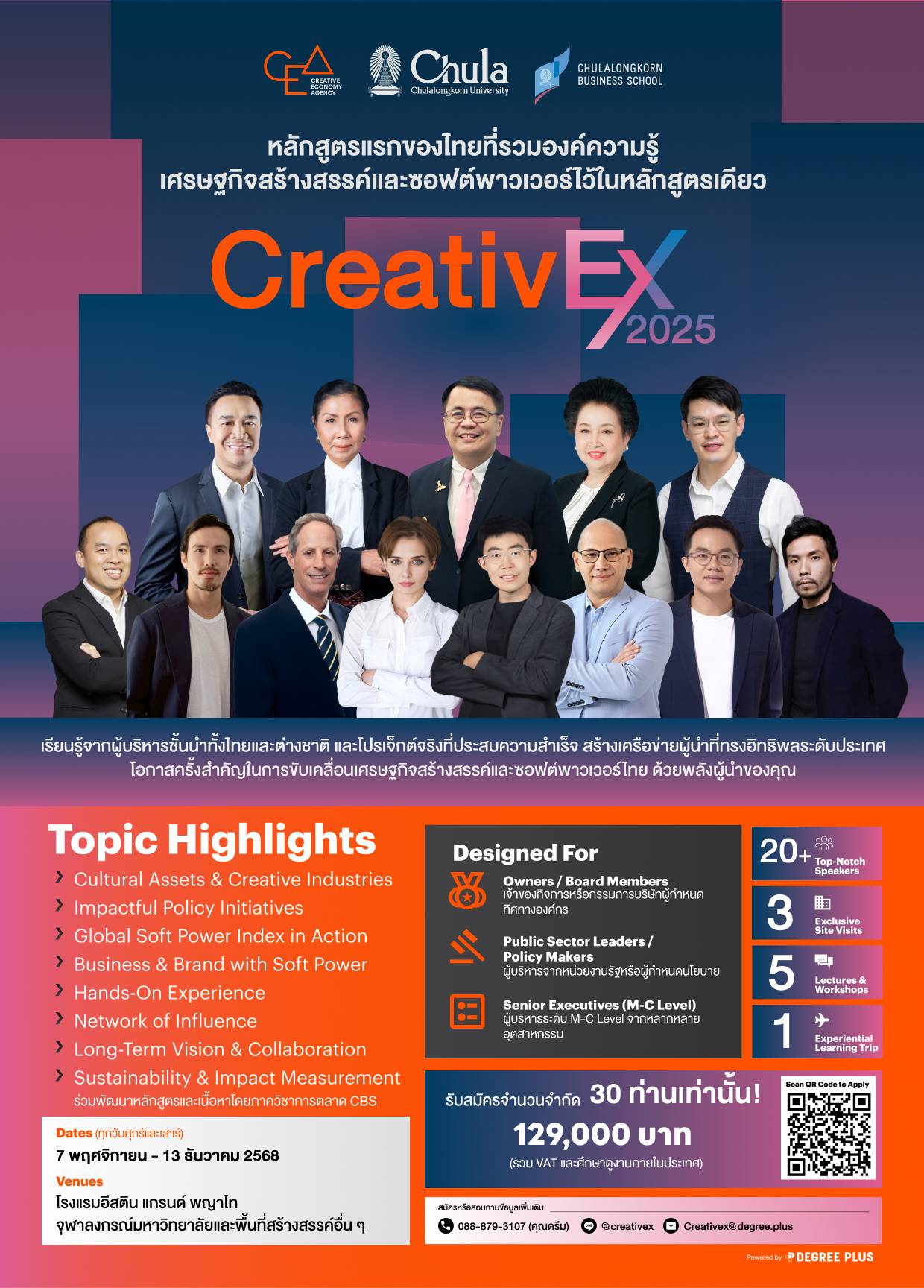 หลักสูตรผู้บริหารระดับสูงด้านเศรษฐกิจสร้างสรรค์และซอฟต์พาวเวอร์ (Creative Economy and Soft Power Executive Leadership: CreativEX 2025)