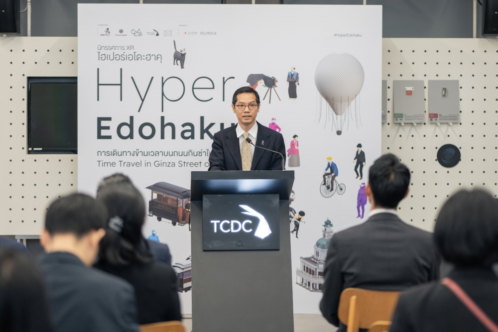 สำนักงานส่งเสริมเศรษฐกิจสร้างสรรค์ (องค์การมหาชน) หรือ CEA ร่วมกับ เจแปนฟาวน์เดชั่น กรุงเทพฯ และสนับสนุนโดย สถานเอกอัครราชทูตญี่ปุ่นประจำประเทศไทย ขอเชิญทุกท่านร่วมเดินทางข้ามเวลาไปกับนิทรรศการ “การเดินทางข้ามเวลาบนถนนกินซ่าในยุคเมจิ – ไฮเปอร์เอโดะฮาคุ” (Time Travel in Ginza Street of Meiji Era - Hyper Edohaku) ที่จะจัดขึ้นระหว่างวันที่ 19 - 26 ธันวาคม 2568 ณ TCDC กรุงเทพฯ ห้อง Gallery ชั้น 1 สำหรับพิธีเปิดนิทรรศการจัดขึ้นในวันที่ 19 ธันวาคม 2568 โดยได้รับเกียรติจากคุณอาคาซากะ ฮิโรกิ เลขานุการเอกและผู้อำนวยการสำนักข่าวสารญี่ปุ่น สถานเอกอัครราชทูตญี่ปุ่นประจำประเทศไทย คุณชิมาดะ อาสึชิ ประธานสมาคมคนญี่ปุ่นแห่งประเทศไทย คุณคุริยามะ มาซายูกิ ผู้อำนวยการบริหารเจแปนฟาวน์เดชั่น กรุงเทพฯ พร้อมด้วย คุณอินทพันธุ์ บัวเขียว รองผู้อำนวยการสำนักงานส่งเสริมเศรษฐกิจสร้างสรรค์ ร่วมกล่าวในพิธีเปิด ณ TCDC กรุงเทพฯ ห้อง Gallery ชั้น 1