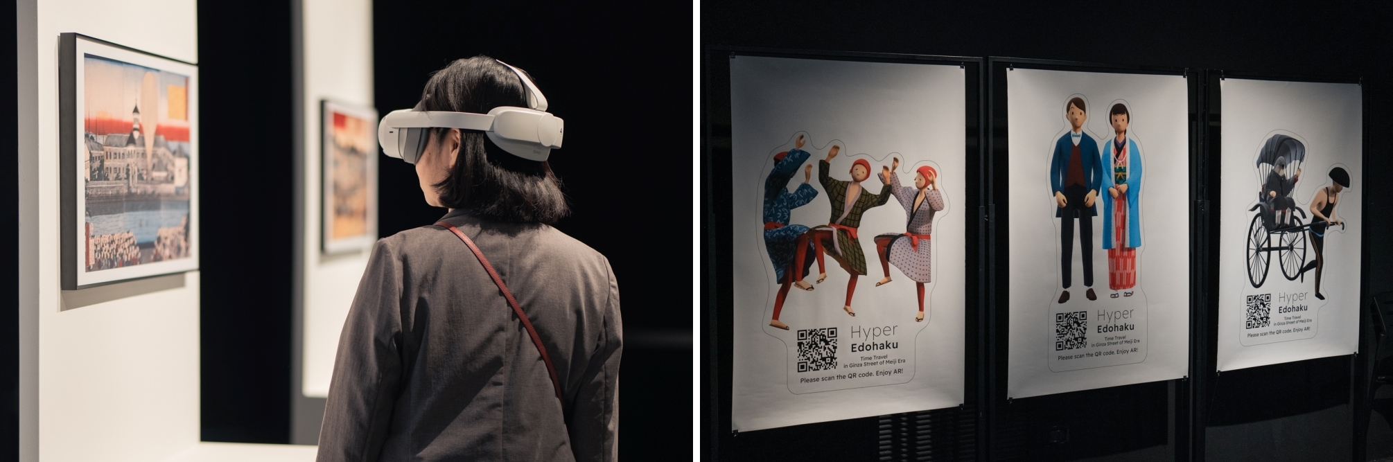 นิทรรศการ “การเดินทางข้ามเวลาบนถนนกินซ่าในยุคเมจิ – ไฮเปอร์เอโดะฮาคุ” (Time Travel in Ginza Street of Meiji Era - Hyper Edohaku) เป็นนิทรรศการสัญจรจากพิพิธภัณฑ์มหานครโตเกียว เอโดะ - โตเกียว (Tokyo Metropolitan Edo-Tokyo Museum) ที่ใช้เทคโนโลยี XR (Extended Reality) ในการบอกเล่าเรื่องราวการเปลี่ยนแปลงและพัฒนาประเทศญี่ปุ่นจากยุคสมัยเอโดะสู่ยุคเมจิ โดยรับเอาเทคโนโลยีสมัยใหม่ เช่น การคมนาคม งานสถาปัตยกรรม รวมถึงนวัตกรรมต่าง ๆ มาผสานกับวัฒนธรรมและค่านิยมตะวันตกที่เห็นได้ชัดเจนในย่านกินซ่า โดยผู้เข้าชมจะได้สัมผัสกับการพลิกโฉมย่านกินซ่ายงโจเมะ (Ginza 4-chōme) จากยุคเอโดะสู่ยุคเมจิ และตื่นตาตื่นใจไปกับวิธีการเดินทางในยุคสมัยนั้น เช่น รถม้า รถไฟ ฯลฯ ด้วยการสวมแว่น MR (Mixed Reality) ในระยะเวลาประมาณ 20 - 30 นาที นอกจากนี้ผู้ชมยังสามารถเปิดประสบการณ์การเรียนรู้สิ่งต่าง ๆ จากวัตถุที่จัดแสดงในพิพิธภัณฑ์ด้วยระบบ MR ได้อีกด้วย
