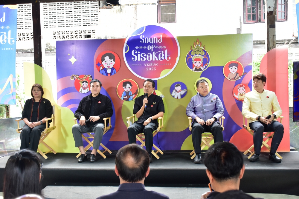 สำนักงานส่งเสริมเศรษฐกิจสร้างสรรค์ (องค์การมหาชน) หรือ CEA เทศบาลเมืองศรีสะเกษ หอการค้าจังหวัดศรีสะเกษ การท่องเที่ยวแห่งประเทศไทย สำนักงานสุรินทร์ - ศรีสะเกษ พร้อมด้วยภาคีเครือข่าย ร่วมจัดงานแถลงข่าวเทศกาล “Sound of Sisaket 2025: ซาวสีเกด 2568” ซึ่งจัดขึ้นต่อเนื่องเป็นปีที่ 4 ระหว่างวันที่ 18 - 21 ธันวาคม 2568 ณ ย่านวงเวียนแม่ศรี อำเภอเมือง จังหวัดศรีสะเกษ ภายใต้แนวคิด “Proud of Sisaket – คนพราว | ของพราว | เมืองพราว” โดยได้รับเกียรติจากคุณอนุรัตน์ ธรรมประจำจิต ผู้ว่าราชการจังหวัดศรีสะเกษ เป็นประธาน พร้อมด้วย ดร. ฉัฐมงคล อังคสกุลเกียรติ นายกเทศมนตรีเมืองศรีสะเกษ คุณสักก์สีห์ พลสันติกุล ผู้อำนวยการสำนักส่งเสริมเศรษฐกิจสร้างสรรค์ ภาคตะวันออกเฉียงเหนือ ดร. รัฐวิทย์ อังคสกุลเกียรติ ประธานหอการค้าจังหวัดศรีสะเกษ และคุณศรีสุภรณ์ ชมศรีหาราชพร ผู้อำนวยการการท่องเที่ยวแห่งประเทศไทย สำนักงานสุรินทร์-ศรีสะเกษ ร่วมแถลงข่าวเปิดงาน เมื่อวันที่ 18 พฤศจิกายน 2568 ณ บ้านไม้โรงแรมสันติสุข ถนนราชการรถไฟ 1 จังหวัดศรีสะเกษ