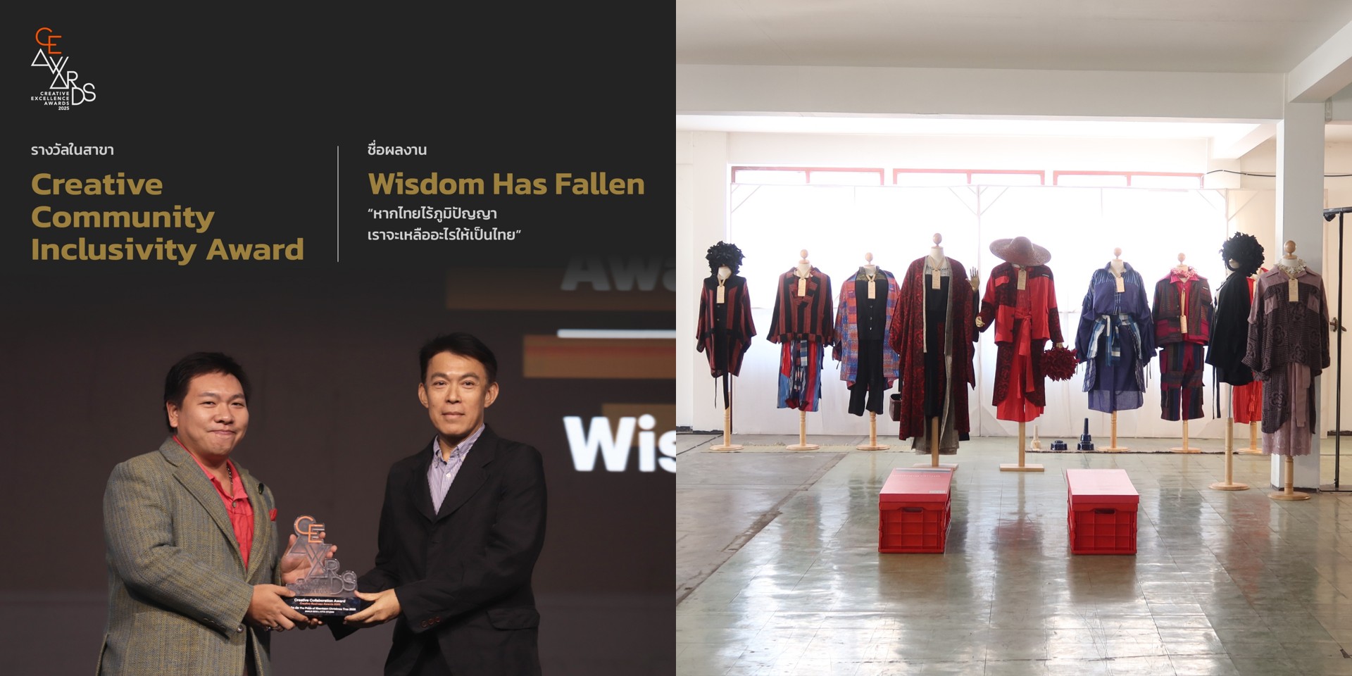 “ภูมิปัญญาวิกฤติ Wisdom Has Fallen” ไม่ใช่เพียงการจัดนิทรรศการ แต่คือกระบวนการทำงานร่วมกับชุมชนเพื่อสร้างภูมิปัญญาใหม่ ภายใต้แนวคิดของ WISDOMATIVE ที่ใช้การออกแบบเป็นเครื่องมือสะท้อนสถานะภูมิปัญญาท้องถิ่นที่ใกล้สูญหาย พร้อมชวนตั้งคำถามต่อคุณค่าที่เลือนหาย ผ่านการจัดแสดงงานหัตถกรรมที่ยังคงมีชีวิต เช่น ผ้าตาป่องจากเชียงใหม่ และบล็อกพิมพ์บาติกจากนครศรีธรรมราช ควบคู่กับภูมิปัญญาที่สูญสิ้นไปแล้วอย่างผ้าหอมอ้วนจากแม่แจ่ม และขันหมากไม้โบราณจากอุบลราชธานี นอกจากนี้ นิทรรศการยังจับคู่ช่างฝีมือกับนักออกแบบ 9 แบรนด์ เพื่อสร้าง 5 คอลเล็กชันใหม่ ตอกย้ำบทบาทช่างฝีมือในฐานะผู้ร่วมออกแบบ สร้างรายได้ตรงสู่ชุมชน และเปิดวงสนทนากับผู้เข้าชมนิทรรศการกว่า 15,000 คนทั่วประเทศ ถึงคำถามสำคัญ... “หากไทยไร้ภูมิปัญญา เราจะเหลืออะไรให้เป็นไทย”