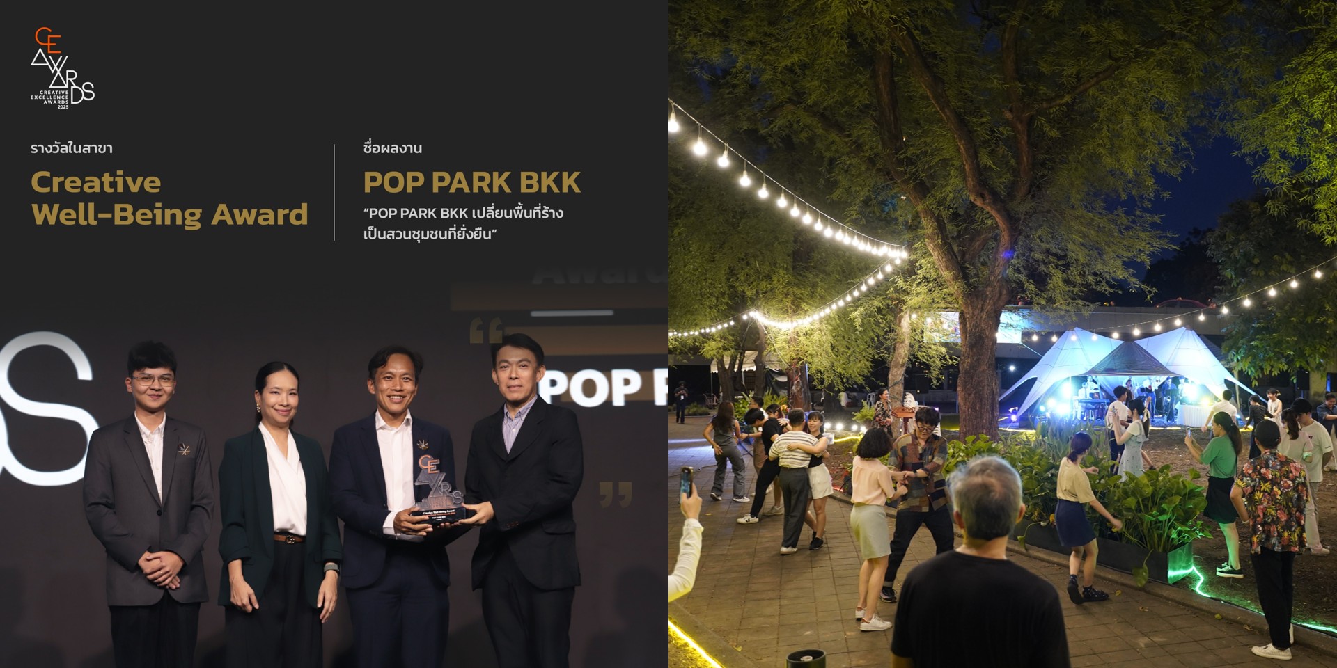 POP PARK BKK เปลี่ยนพื้นที่ว่างกลางเมืองให้เป็นสวนสาธารณะสีเขียว ภายใต้นโยบาย “สวน 15 นาที” ของกรุงเทพมหานคร โดยเปิดโอกาสให้ชุมชนมีส่วนร่วมตั้งแต่ขั้นตอนการออกแบบ การพัฒนา ไปจนถึงการดูแลรักษา และก่อนปรับปรุงมีการจัดกิจกรรมทดลองเชิงพื้นที่และกิจกรรมเวิร์กช็อปเพื่อสะท้อนความต้องการจริงของคนในพื้นที่ การพัฒนามุ่งเน้น 6 ด้าน ได้แก่ สุขภาพ การสัญจร การเชื่อมต่อกับแหล่งน้ำ ความหลากหลายทางชีวภาพ เกษตรในเมือง และกิจกรรมสร้างสรรค์ ผลลัพธ์คือชุมชนมีพื้นที่ปลอดภัย สังคมสัมพันธ์แน่นแฟ้น เศรษฐกิจท้องถิ่นมีความเข้มแข็ง และสิ่งแวดล้อมได้รับการฟื้นฟูอย่างยั่งยืน