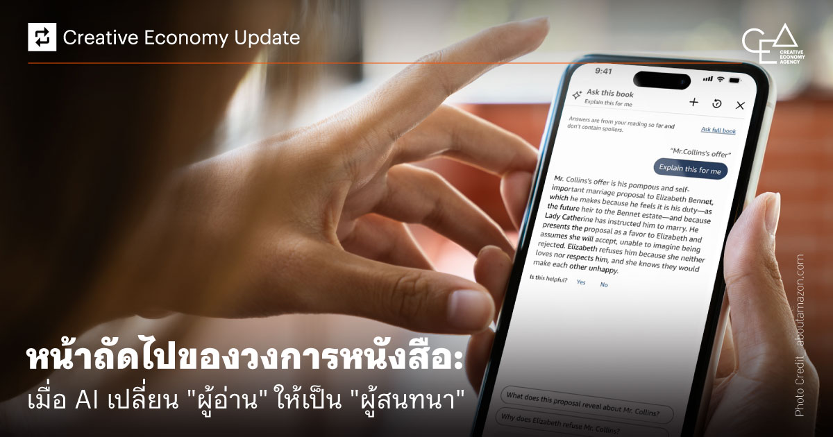 กรณี Ask this Book ของ Amazon และ VoiceChat ของ Elevenlabs จึงไม่ใช่แค่เรื่องของฟีเจอร์ใดฟีเจอร์หนึ่ง แต่คือสัญญาณเตือนที่ชัดเจนว่า ในยุคที่ AI กำลังเข้ามาอยู่ใน "ทุกหน้า" ของหนังสือ คำถามว่า ใครมีสิทธิ์กำหนดความหมายของหนังสือ ระหว่างผู้สร้างสรรค์ ผู้จัดจำหน่าย และเทคโนโลยี จึงกำลังจะกลายเป็นสมรภูมิที่ต้องการคำตอบอย่างเร่งด่วน